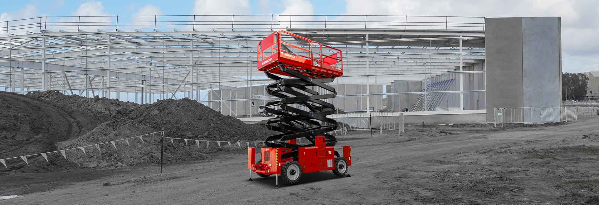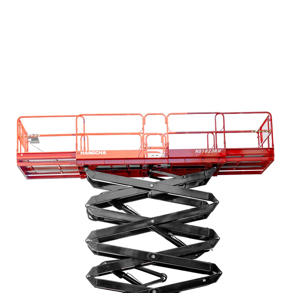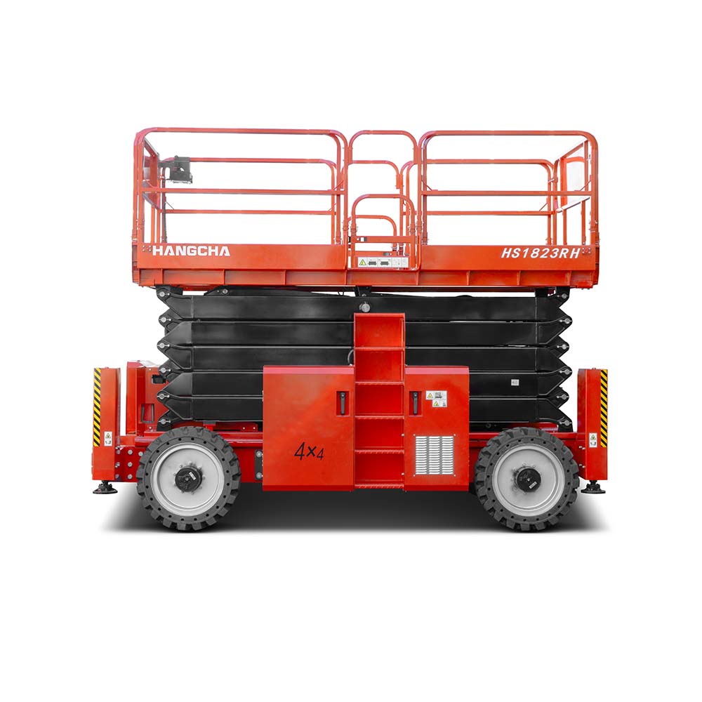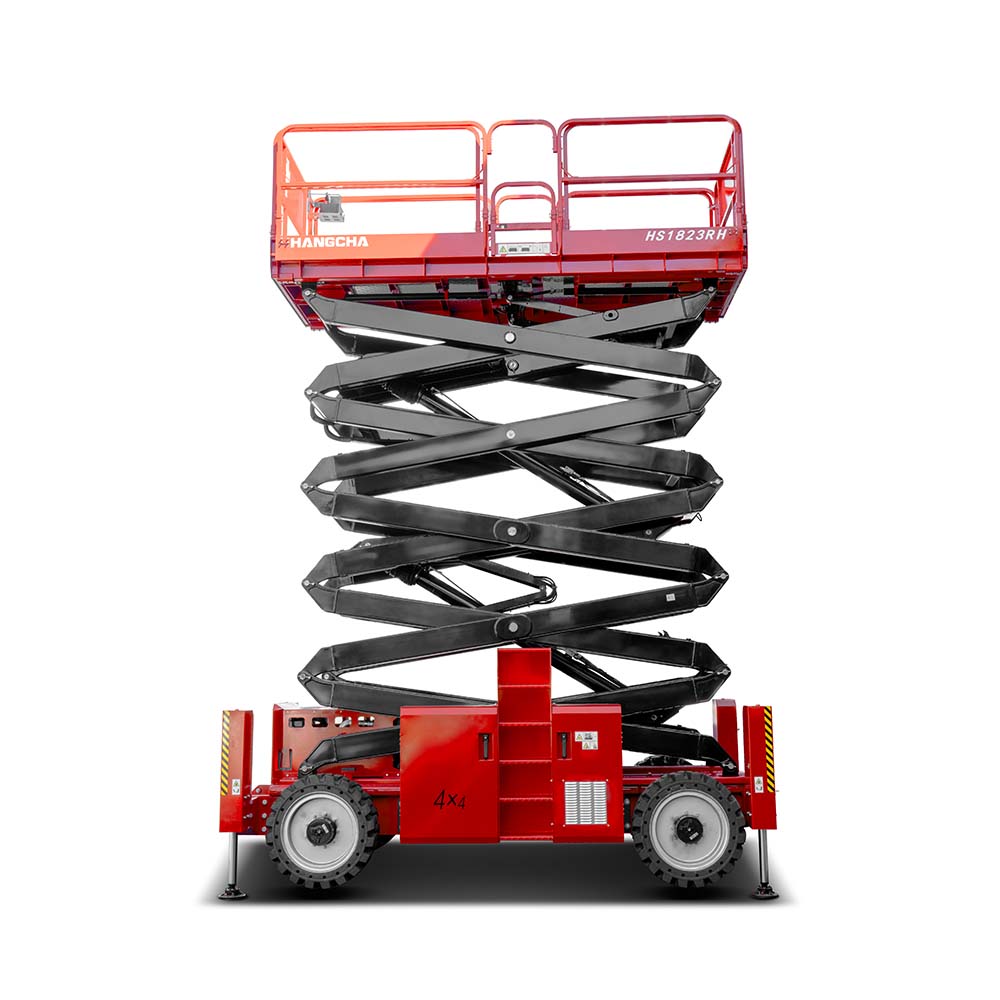 The HANGCHA diesel rough terrain scissor lifts make many difficult and dangerous jobs easier, such as indoor and outdoor cleaning (ceilings, curtain walls, glass windows, eaves, canopies, chimneys, etc.), installation and maintenance of billboards, installation and maintenance of street lamps and traffic signs, construction at construction sites, etc.