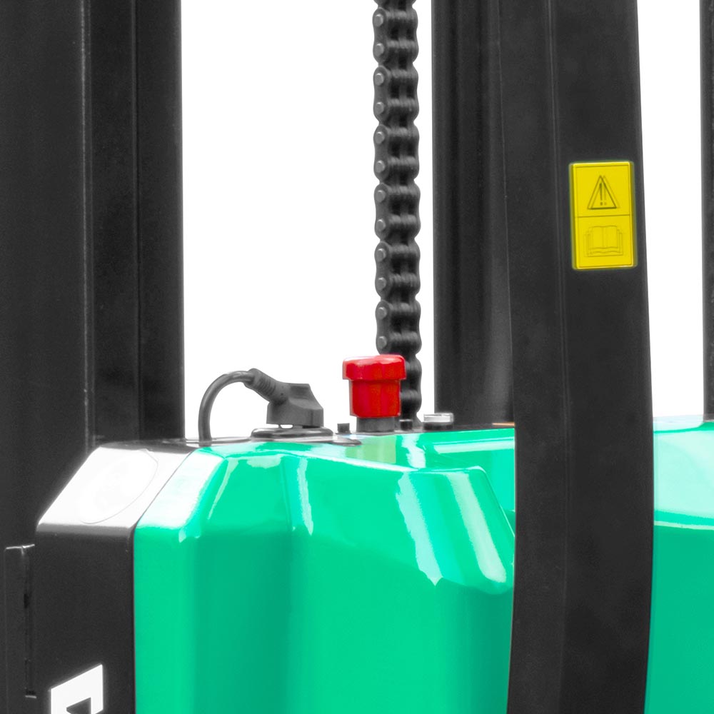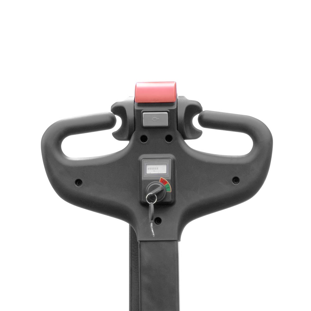 Emergency reverse button located at the handle head effectively protecting the operator from injury when traveling backward in emergency situations.