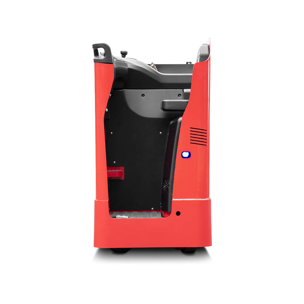 Folding seat for leaning or sitting allows both stand-on and seated operation, providing operators with more driving options during long-distance transport.